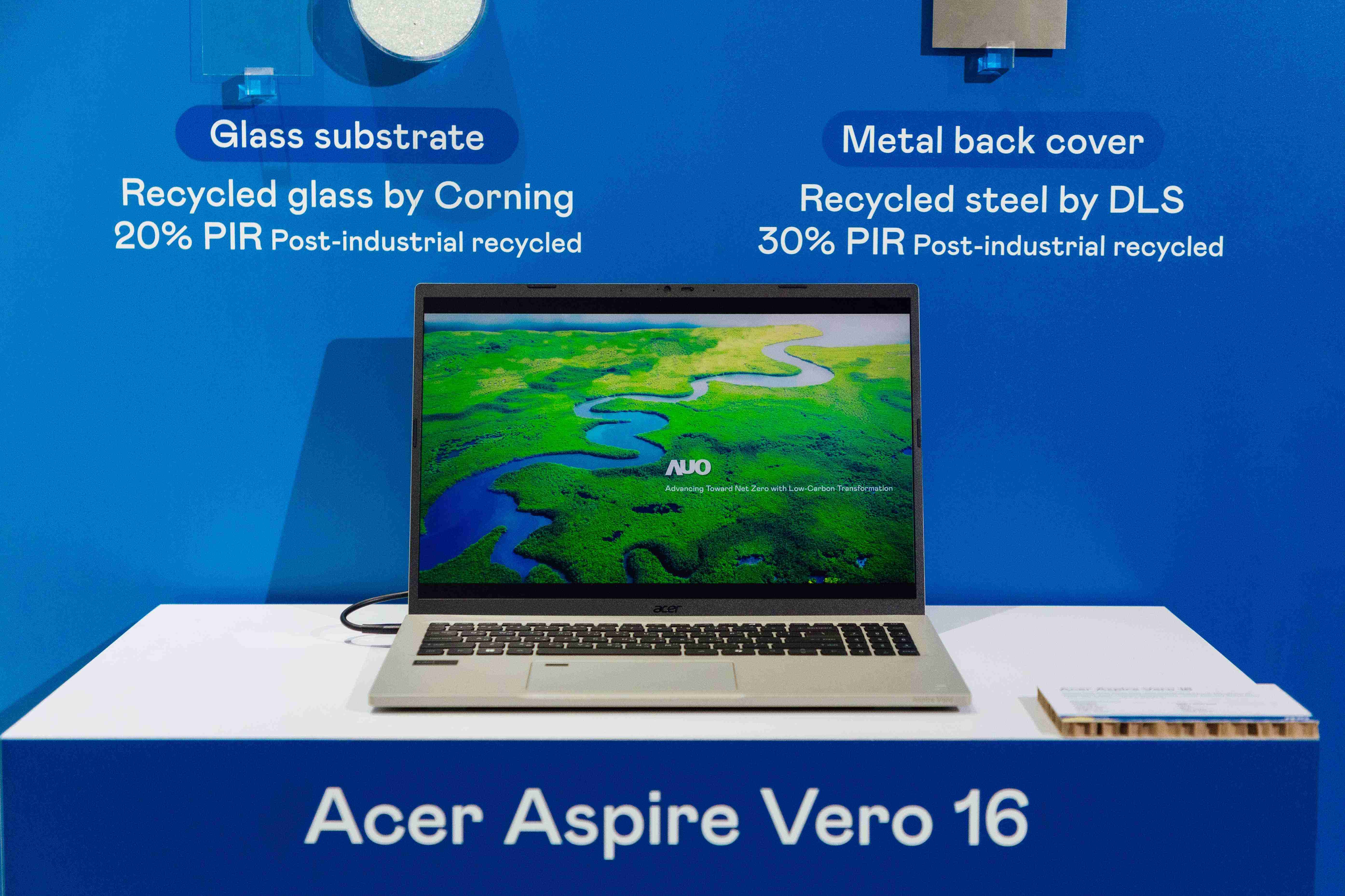全球首款笔记型电脑采用尊龙集团100%绿电制造的面板,,,,结合PCR外亦使用工业后回收材料(PIR),,例如回收玻璃和金属,,,减少对环境的影响。。