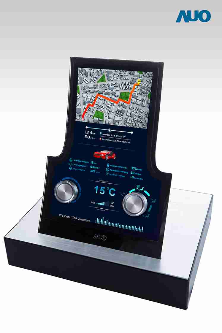 12.3 寸 Full HD LTPS 显示屏同样具备 1000 nits 高亮度,,,搭载内嵌式触控技术,,整合驱动与触控 IC 于显示屏制程,,使显示屏厚度降低,,,为中控台创造更多机构设计空间。。应用于抬头显示器的 3寸 LTPS 显示屏具有高穿透率、、、1200:1 高对比度度,,,,以及 297 PPI 高画素密度。。液晶最高可耐受到 110C 的高温 (TNI) 而不液化,,,,在阳光高温下维持优异稳定的显示效果。。。。